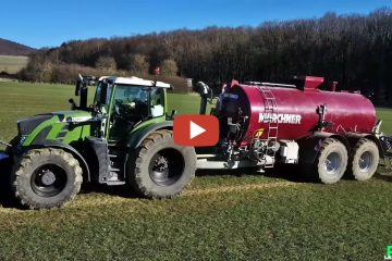 Saisonstart bei der Gülleausbringung 2022 mit Fendt 724 Vario und Marchner Güllefass im Getreide. — Landtechnik FHD