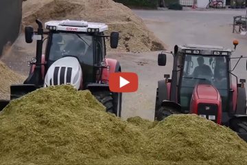 Maisernte 2017 Claas Jaguar und mehrere Massey Ferguson Traktoren sowie ein Steyr Terrus mit 270 PS und einer Silage schaufel. — Paderborner Agrarvideos