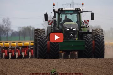 Bodenbearbeitung mit einem Claas Axion 960 mit Köckerling Allrounder, einem Claas Axion 950 mit Horsch Tiger 5 AS und einem Case Quadtrac 620 mit Horsch Grubber. Die Rüben werden von einem Fendt 936 mit 24 reihiger Väderstad Tempo L gelegt — Landtechnik MV – Agricultural Videos