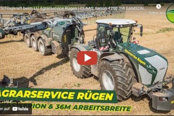 Das Güllegespann vom Lohnunternehmen Agrarservice Rügen, bestehend aus einem Claas Xerion 4200 Traktor und einem Samson PG II 31 Güllefass und 36m Arbeitsbreite. — AgrartechnikHD – Agriculture in Action