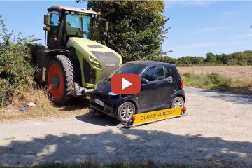 Fritz the Blitz — Ein New Holland Mähdrescher CR 8.80 auf Vorführ-Tour 2018 zwischen Harz und Elm. der Drescher steht auf einem Raupenlaufwerk – „Raupe Nimmersatt“!