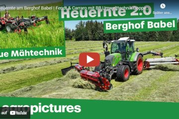agropictures — Heuernte am Berghof Babel – Fendt & Carraro mit BB Umwelttechnik Doppelmessermähwerk und Kammschwader. : Es gibt neue Maschinen zum Mähen und Schwaden