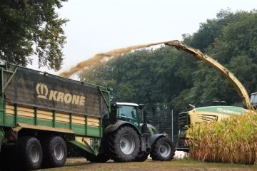 Daily Machines — Maisernte für eine Biogasanlage bei Dülmen in Nordrhein-Westfalen, Deutschland, vom Lohnunternehmer Kappelhoff aus Ahaus.Krone Big X 1180. John Deere und Fendt Traktoren.