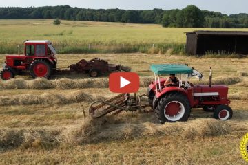Agrar Paparazzi — Hier wird mit einem Case IH und Kammschwader das Heu geschadet und dann mit einem Belarus MTS 82 mit einer HD Ballen Presse kleine HD Ballen gepresst.