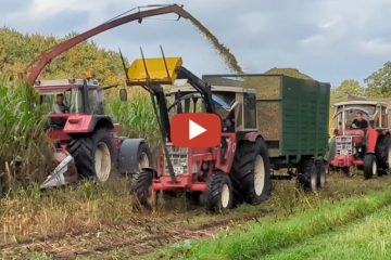 Oldtimer häckseln 2023 in Ostfriesland mit einem IHC 1246XL und drei Reiher, als Abfahrgespanne ein 744 mit Dumper & zwei 633 mit Santex Häckselwagen.- AgrarPilot Ostfriesland