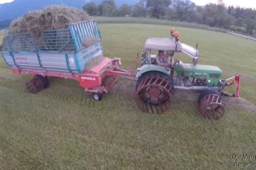 Etwas Besonderes. Deutz 4006 A mit Eigenbau Gitterräder am Streu Laden mit Mengele 310