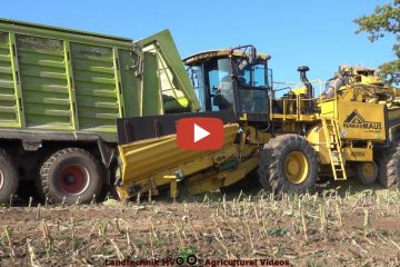 LU. Markus Holtgers bei der Maissilage 2023 mit einem Claas Jaguar 960 und zwei Claas und einem Fendt Traktor als Abfahrer. Am Feldrand wird mit einer Ropa/Nawaro Bunkermaus, System Palandt, auf LKW verladen. Auf dem Silo sind ein Claas Axion 960 TT und ein John Deere bei der Arbeit. — Landtechnik MV – Agricultural Videos