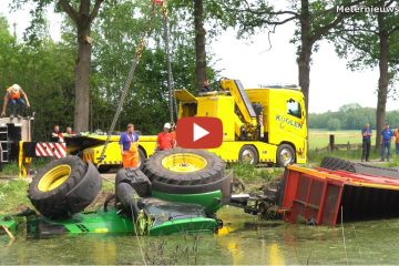 Meterieuws — Oosterhesselen – Ein Traktor mit Anhänger ist in der Verlengde Hoogeveense vaart gelandet – Soweit bekannt, ist der Fahrer des Traktors gut davongekommen.