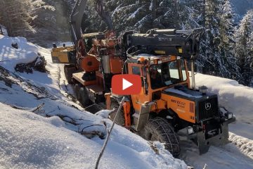 MB Trac beim Seilkrantransport auf glatter Bergstraße –Christian Florinett