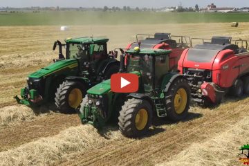 Ballen pressen 2022 in Italien…..John Deere 8R.310 und ein John Deere 8230 mit Kuhn SB 1290 iD Hochdruckpressen. — Gabry982