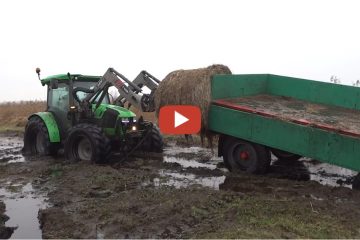 Polen, extrem nasse Heuernte und Transport mit einem Claas Arion 620 und Deutz-Fahr 5110 Traktor