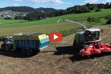 Gumpenberger Agrar– Mais Häckseln 2023 Claas Jaguar 950 Landewagen: John Deere 6215R mit Mengele Rotobull 7000 und Steyr 6240 CVT mit Fendt Tigo 50 PR D