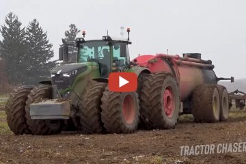 Fendt 1050 beim Ausbringen von Gülle mit einem Nuhn-Tank im Bundesstaat New York USA — Tractor Chasers