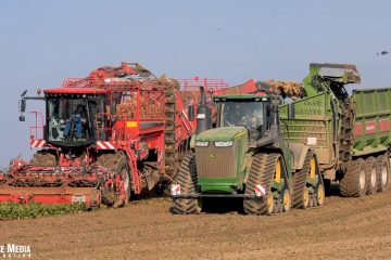 Bryce Media / ffarmer99 — Ganz besondere Maschinenformation spielten sich im Östlichen Mecklenburg-Vorpommern ab. Holmer TerraDos T4 & John Deere 9RX mit Bergmann RRW 500 Rüben ÜLW. Rüben roden 2024