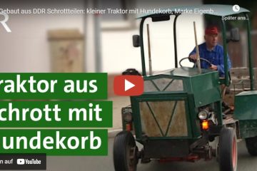 Gebaut aus DDR Schrottteilen — Hund Rolli liebt eines: Traktor fahren! Dafür hat Besitzer Lothar König ihm einen Hundekorb gebastelt und an die Seite des Eigenbau Schleppers geschwei — Unser Land