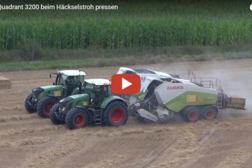 Lohnunternehmen Alfons Rupp — Die beiden Claas Quadrant 3200 Special Cut Pressen mit Krassort Vorbauhäcksler im Einsatz beim Häckselstroh pressen.