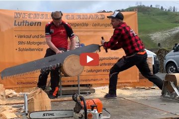 Bauern Zeitung — Vorführung Timber Sport Show — Anlässlich der 100 Jahr GV von Wald Luzern präsentierte das Team von Timbersport Luthern eine spektakuläre Show mit Axt und Motorsägen.
