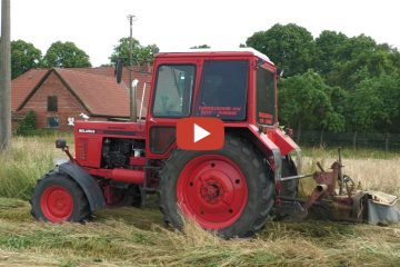 Belarus MTS 82 beim Mähen – Hier wird mit einem Belarus MTS 82 und einem PZ-Vicon CM 185 Gras gemäht um daraus Heu zu machen. — Agrar Paparazzi