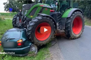 Golf-Fahrer übersieht Traktor – Der Golf wird wir auf einer Schrottpresse zusammengedrückt. Trotzdem konnte der Fahrer sich unverletzt aus dem Auto befreien. — Auto Mobil