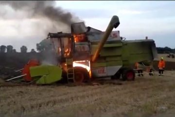 Feuerwehreinsatz an einem Claas Dominator 108 SL