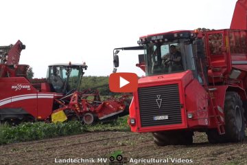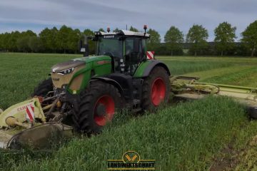 Agrarlohn Müritz beim pressen von Quaderballen mit 3 Fendt und 3 Krone BIGPACK 1290 HDP. Das sammeln übernimmt ein Claas Torion 1914 mit Meijer Ballenzange und zwei Fendt mit Flachbetthängern. — Landtechnik MV – Agricultural Videos