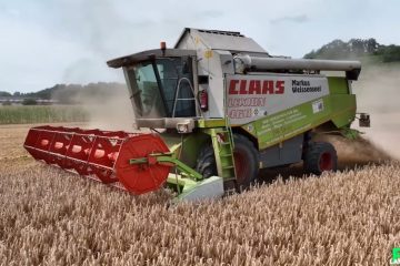 Landtechnik FHD — Das erste Video aus der Getreideernte 2024 zeigt einen Claas Lexion 460 beim Triticale dreschen