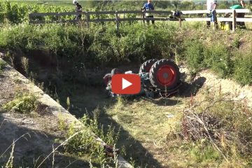 Traktor mit zwei Personen — Verkehrsunfall mit zwei schwer verletzten Personen — Steil- TV