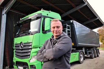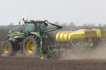 Hier bringt Franz mit dem Valtra und einem gezogenen Rauch Düngerstreuer den Dünger auf die Felder aus.– Agriculture Germanyy