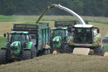 Erster Schnitt mit Lu. MMV und einem Claas Jaguar 980. Abgefahren wird von verschiedenen Claas und Fendt Traktoren mit Krampe Kippern – Landtechnik MV – Agricultural Videos