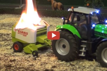 Siku Control Rundballenpresse fängt Feuer und brennt aus. Round Baler burns. Siku Trans