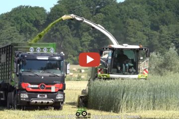 Agrarbetrieb Brandt GPS häckseln – 2023 – mit einem Claas 980 und 6 Meter Claas Direct Disc, für den Transport sind verschiedene Fendt und Valtra Traktoren und ein Mercedes LKW im Einsatz. Auf dem Silo sind ein Fendt 942 und ein John Deere 8330 mit Saphir und Hollaras Siloausrüstung bei der Arbeit — Landtechnik MV – Agricultural Videos