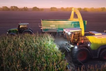 Die Aufnahmen vom Claas Jaguar 1200 beim Häckseln von Mais 2025 bei der Firma Wagner Agrarservice GmbH in Ostdeutschland in der Nähe von Leipzig. Drohnenaufnahmen Landwirtschaft