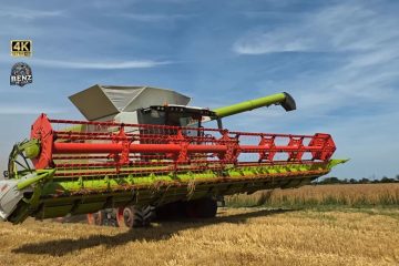 Nagelneuer Claas Mähdrescher Lexion 8700 mit Cemos Automatic und 10,80 m Tisch beim dreschen von Unwetter niedergeschlagene Gerste 2025! Benz de Liga