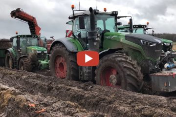 Fendt 1050 schleppt John Deere während der Karottenernte — Worcester Smallholder