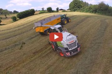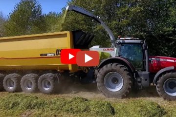 Familie van Bakel, bei der Grasernte mit ihrem Claas Jaguar 970, dem USA CF2000 und einem Ladewagen von Pöttinger.