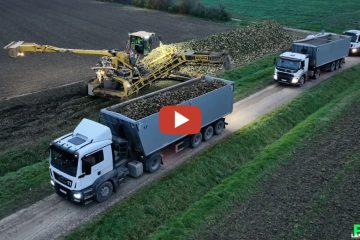 Landtechnik FHD – Ropa Maus 5 bei der Zuckerrüben verladung 2022. Den Abtransport übernahmen einerseits LKW ’s in die Zuckerrüben Fabrik nach Ochsenfurt und andererseits Traktoren für eine nahegelegene BGA um die Rüben dort zu Rübenschnitzel zu verarbeiten.