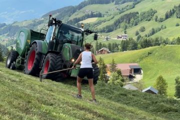 os waldinger – Silageernte bei schwierigen Bedingungen Pressen und Wickeln von Rundballen. Fendt 312 Vario Traktor.