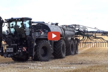 Agrarlohn Müritz mit einem Claas Xerion 4000 Saddle Trac, mit SGT Vorbaupumpe beim ausbringen von Gülle. – Landtechnik MV – Agricultural Videos
