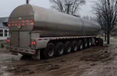 Milchtransport auf einer amerikanischen Rinderfarm unter harten Winterbedingungen. Kip Siegler Farming.