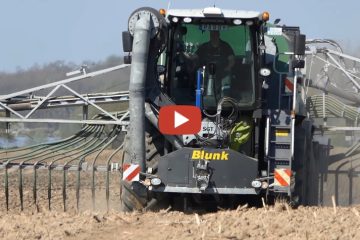 Lu. Blunk mit einem Claas Xerion 4000 Saddle Trac mit SGT Vorbaupumpe und Faßaufbau , mit angehängtem Kaweco Tridem Faß mit 36M — Landtechnik MV
