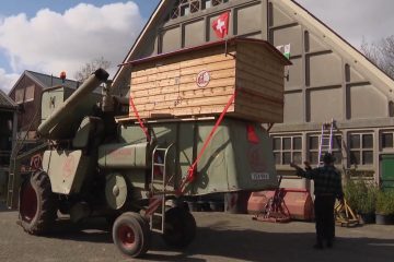 Schweizer kauft alten Mähdrescher von 1966 in Emmeloord (Niederlande) und fährt in 2 Wochen nach Croy in die Schweiz. — Omroep Flevoland