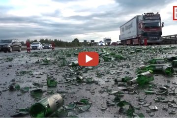 Schade !! Lkw verliert 100 Kisten Bier – Autofahrer räumen auf — Scherben sollen ja bekanntlich Glück brechen