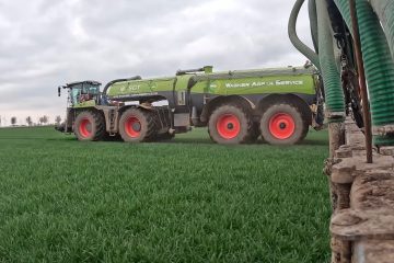 Wagner Agrar Service – Ein Claas Xerion 4200 Saddle Trac mit einem SGT ST 30000 Fall beim Gülle fahren 2025. Stefan Lübke