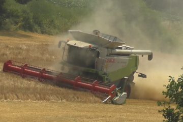 Ein Stück Claas Lexion 600 Terra Trac Pfaffenhofen in der Hallertau am Frühen Mittag beim Dresch — DB BAHNFAHRER