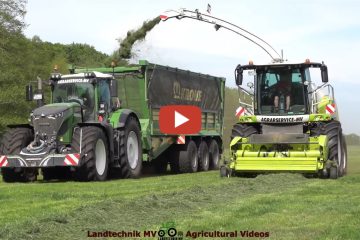 2022 Agrarservice MV beim ertsen Schnitt mit einem Claas Jaguar 980 und verschiedenen Fendt Traktoren, 828, 942 und 1050, jeweils mit Krone Anhängern für den Transport. — Landtechnik MV – Agricultural Videos