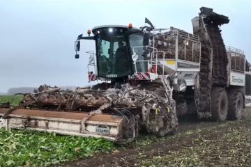 Ropa Tiger 6S der Rübenrodegemeinschaft Weinviertel beim Zuckerrüben Roden unter winterlichen Bedingungen. — Weinviertler Agrarvideos