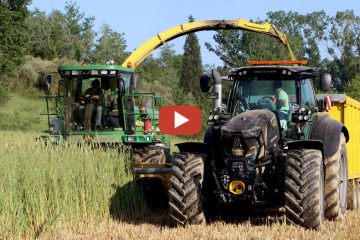 Italien. GPS-Häckseln mit einem John Deere 7500. Lamborghini-, Same- und Deutz-Traktoren….