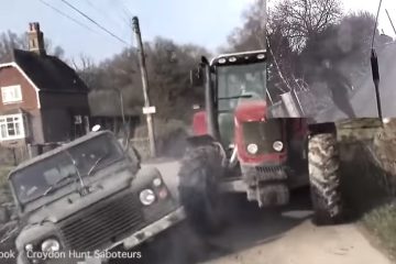 Traktor rammt Land Rover weg von der Straße und in Graben