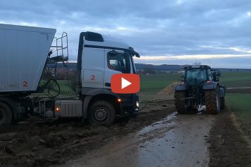 Erste Probefahrt mit dem neuen Seitenausleger Valtra T174e Direct mit Gödde Auslegemähgerät GZA 850 S