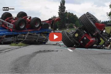 Am Dienstag ist ein Traktor mitsamt Anhänger auf der Bischofszellerstrasse aus bislang unbekannten Gründen umgekippt. – BRK News